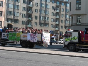 2009 firade studenter i Uppsala en-miljövänlig-stu-dentexamen! I år hotar arga-studenter-med att ockupera-stadshuset för rättigheten att få förpesta luften och skapa trafikkaos i City med studentflak.(sr.se) Påminner om när jag anordnade en protestaktion mot den obligatoriska duschen efter gympan i 4:e klass. Ungefär lika övertänkt.