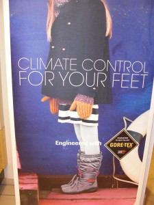 ”I takt med att världen har blivit varmare har temperaturen sänkts i förhandlingsrummen”, skriver GP: (Hm, kanske har det t o m blivit fuktigare?) Hur som helst är det är svårt-läge-för-miljösamtal-i-Doha och brist på kontroll, så jag undrar om reklamen på fotot (från en Ecco-butik) även visas där.